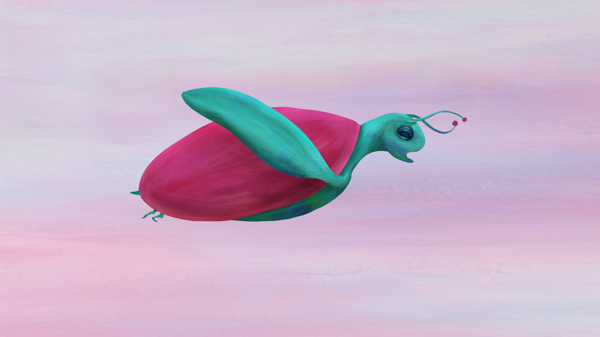 - Eine fliegende Meeresschildkröte, hintere Gliedmaßen winzige menschliche Beine, zwei Tentakeln ähnlich den Tentakeln von Anglerfischen