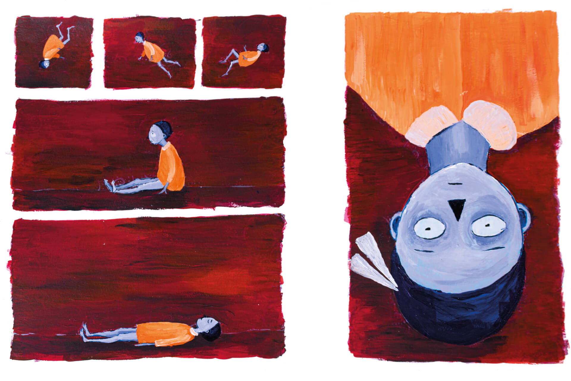↑ Das Kind fällt in den Bauch der Schildkröte: Szene aus dem Buch „Das Kind und der Drache”