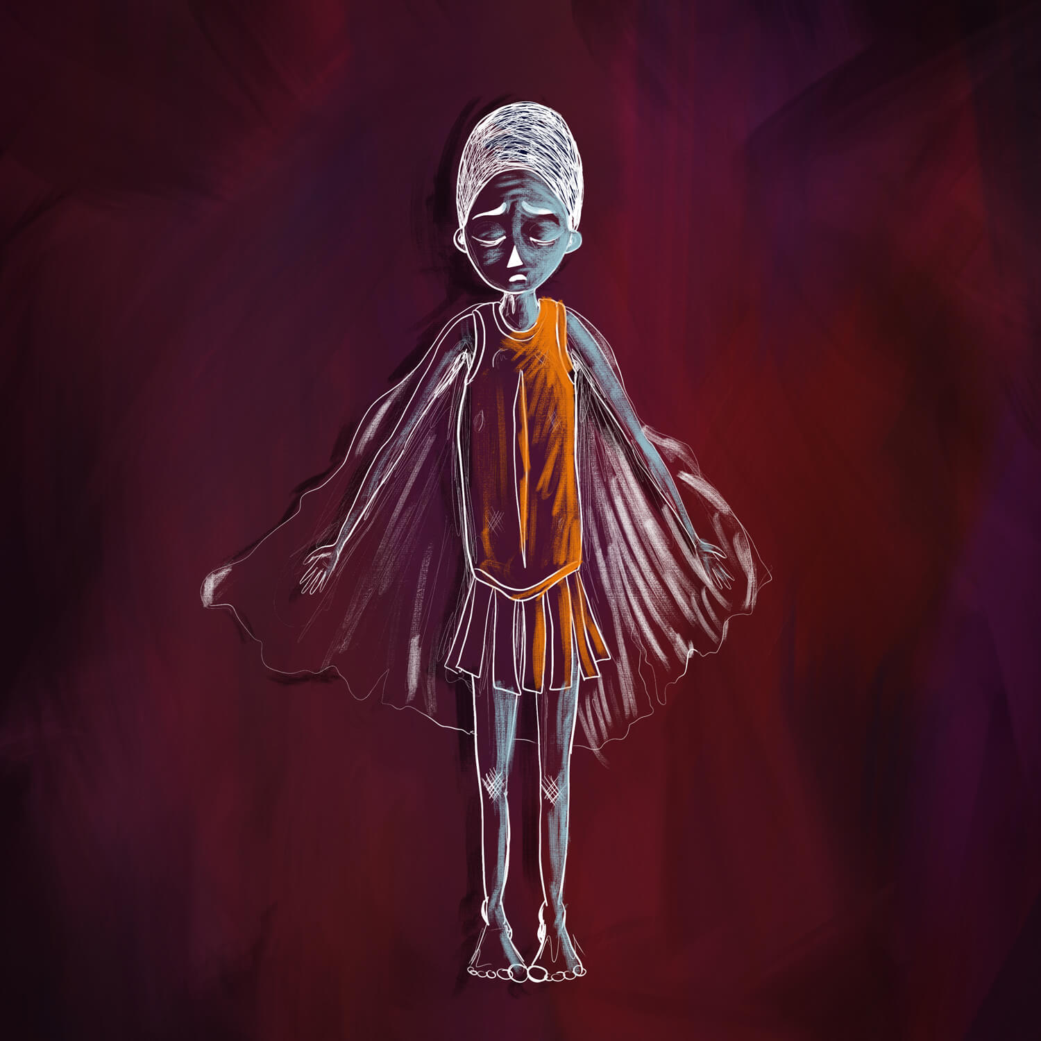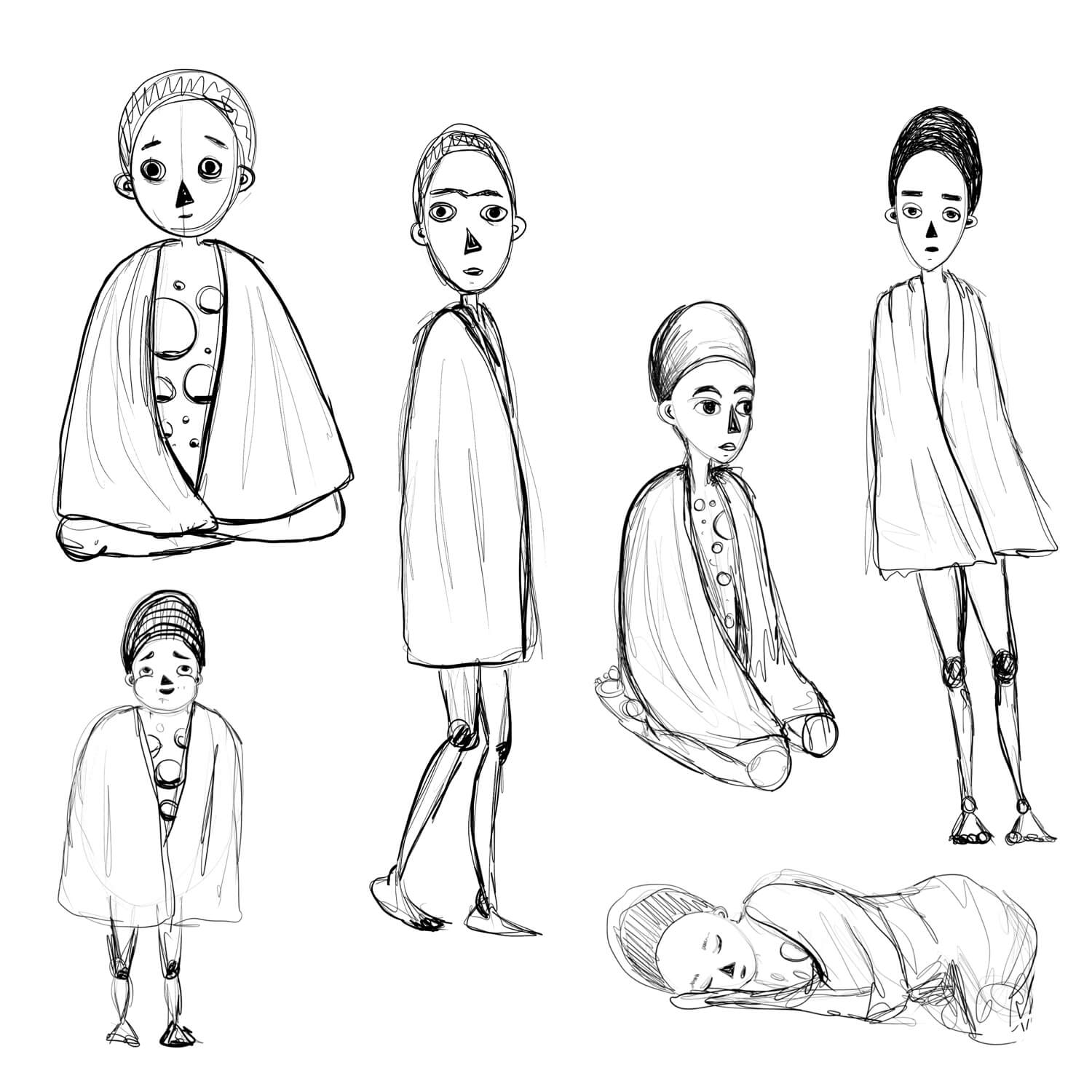 ↑ Entwurf für das Kind, das alleine im Bauch der Schildkröte weint