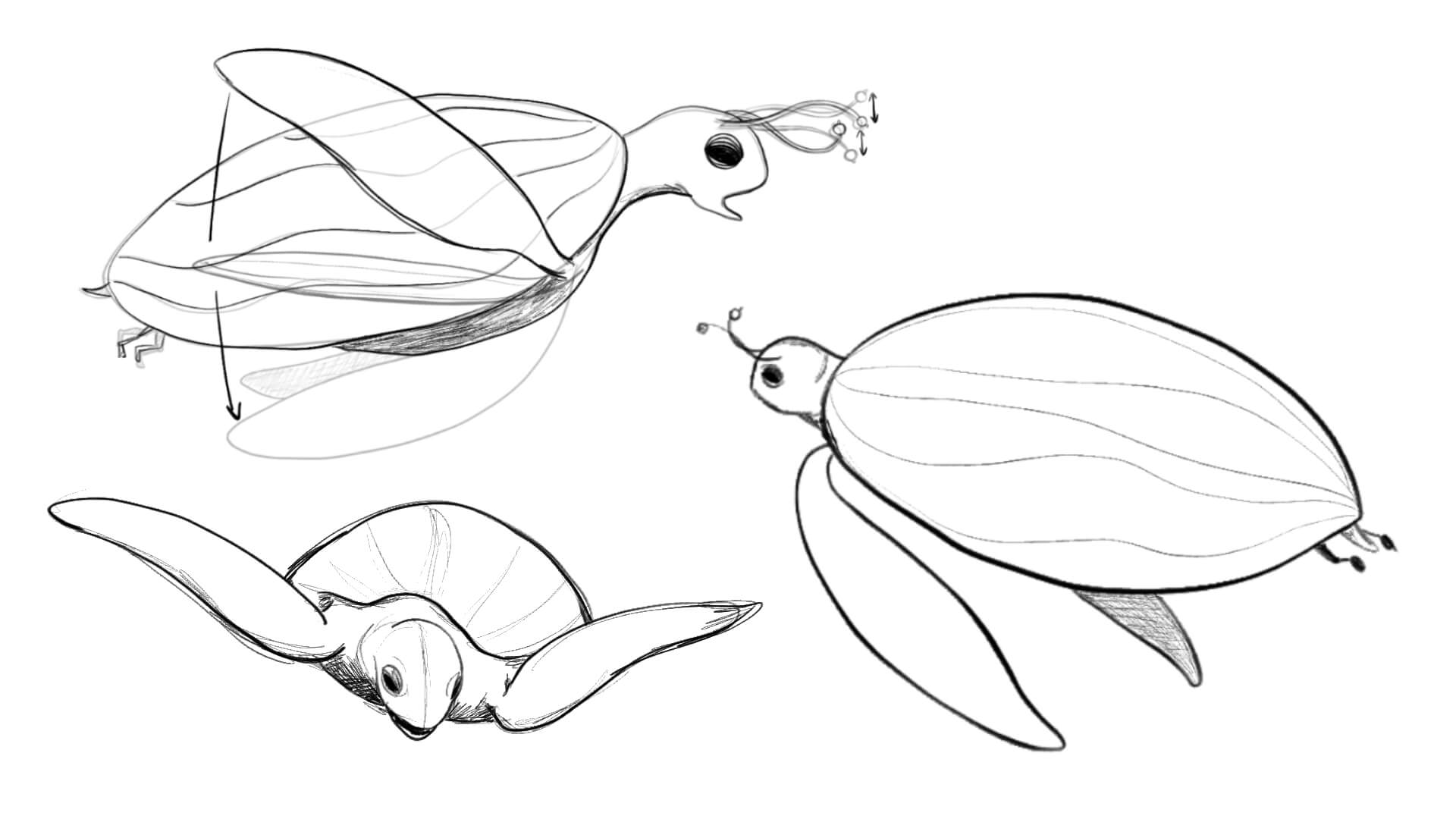 ↑ Entwurf für das Kind, das alleine im Bauch der Schildkröte weint