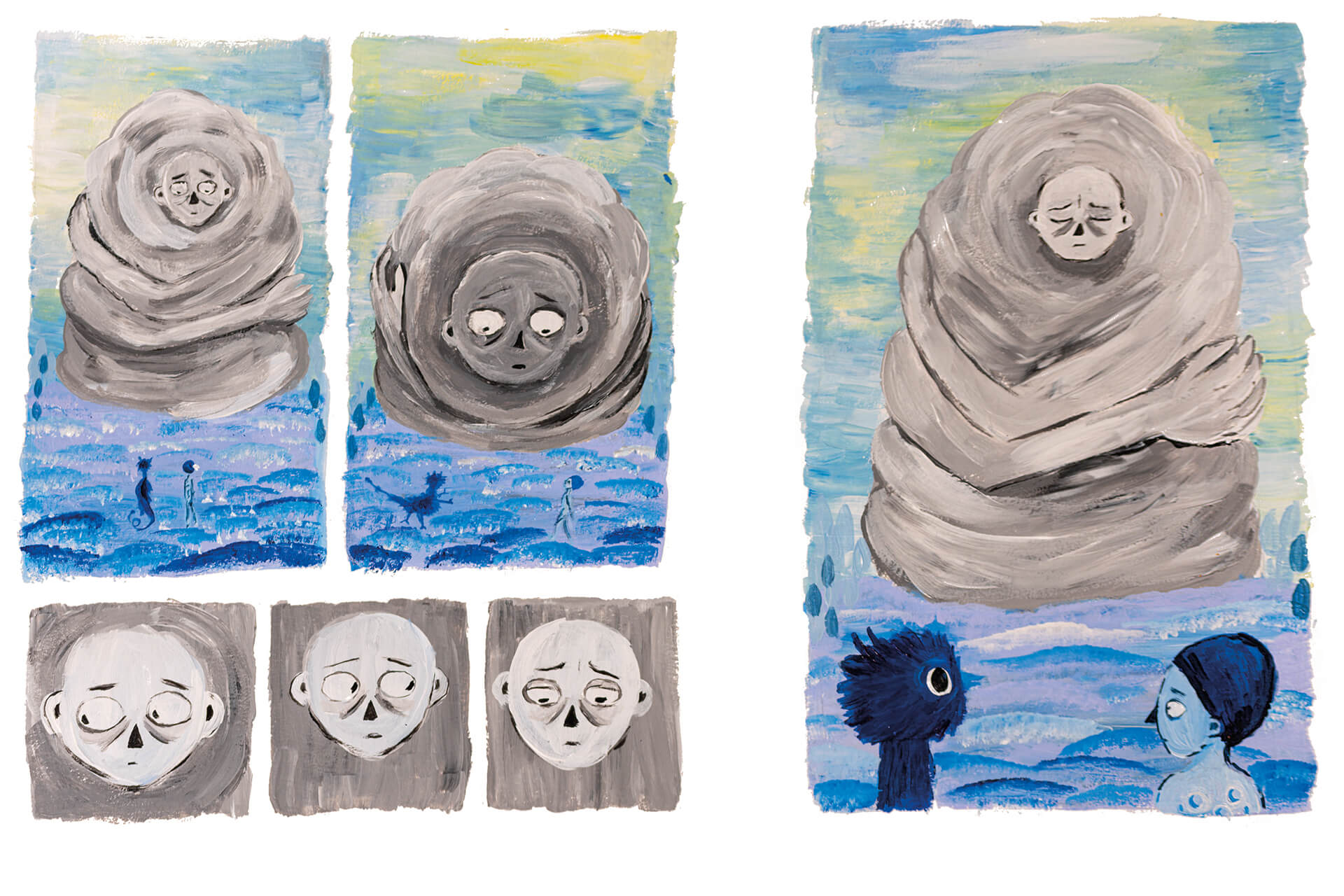 Das mittlere der Felsenwesen wird von dem Drachen und dem Kind geweckt, doch es hat leider keine Antworten fĂŒr das Kind, weint eine TrĂ€ne aus Stein und wendet sich ab. Das Kind versucht einen Teil der Traurigkeit des Wesens auf sich zu nehmen und nimmt den TrĂ€nenstein mit. Da die Felsenwesen keine Antworten geben konnten, laufen das Kind und der Drache weiter.