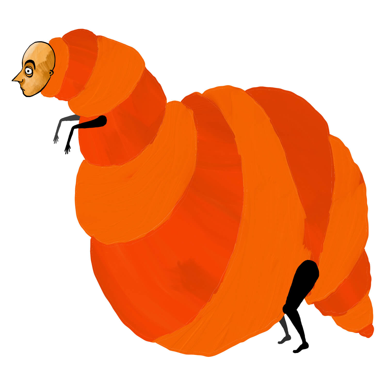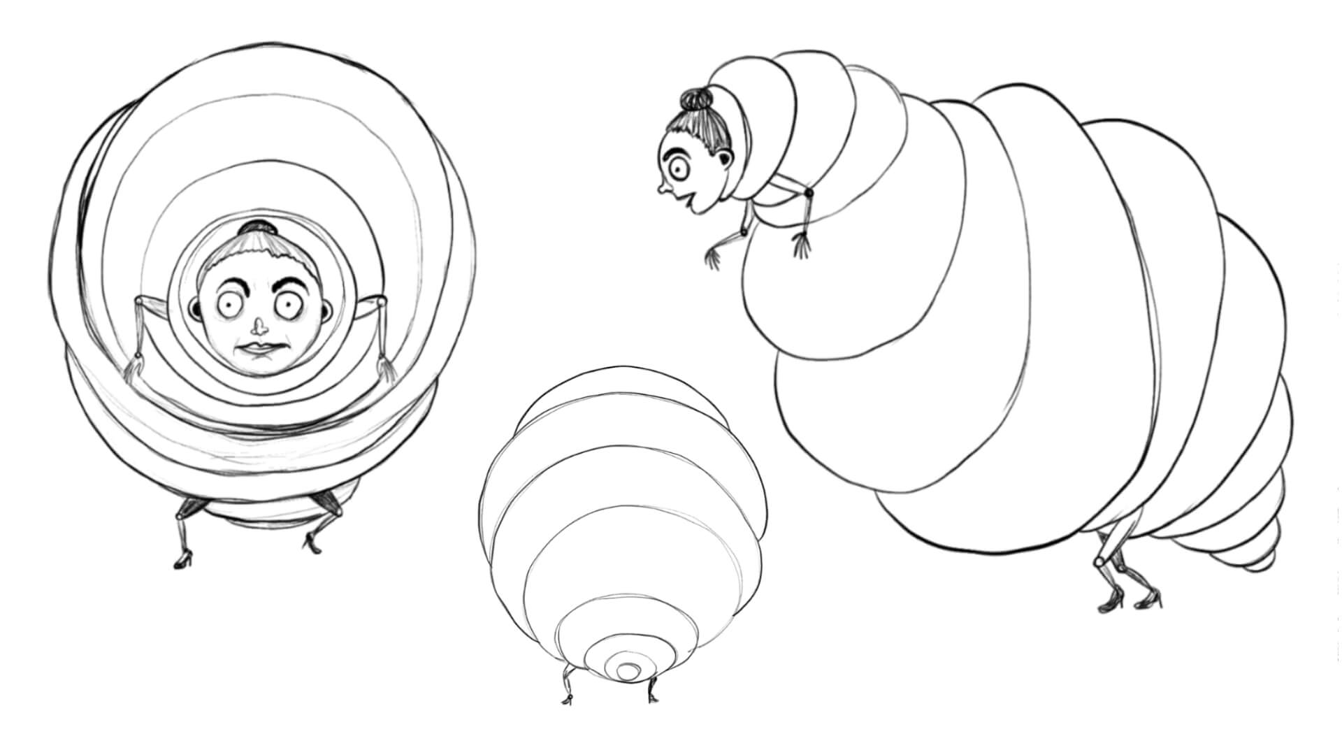 - Körper der einer Seidenraupe, im VerhÀltnis zum Körper winzige menschliche HÀnde und Beine, tragen Pumps, Kopf ist menschlich